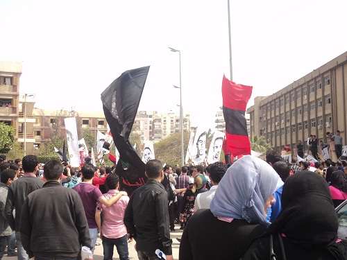 نظم المئات من طلاب جامعة المنصورة والمنتمين للأتراس أهلاوي وقفة احتجاجية أمام كلية التربية ؛ للمطالبة بالإسراع في القصاص لدماء شهداء أحداث بورسعيد , وعلى رأسهم شهيد الدقهلية محمد خاطر و وطالبوا بسرعة تحديد الجناة الحقيقيين والمدبرين لتلك المذبحة .