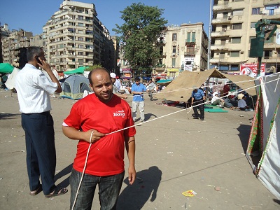 قرر ثوار الدقهلية استمرار اعتصامهم بميدان التحرير وقاموا بنصب خيام الاعتصام بوسط ميدان التحرير لتقيهم من شدة حرارة الجو