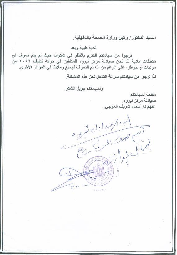 قامت الدكتورة أسماء شريف - العضو باللجنة - برفع شكوى لرئيس اللجنة الذي قام برفعه إلى وكيل المديرية والذي أشّر عليه.